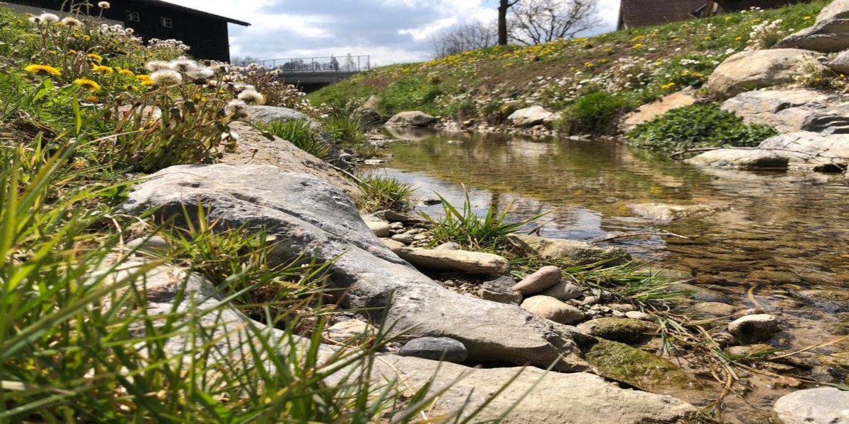 Nachfolgend einige Impressionen während der Bauphase (Frühling 2020) sowie nach der Fertigstellung entlang der Strasse und unterhalb des Durchlasses Weiler Gmeinmerk (Frühling 2021).
