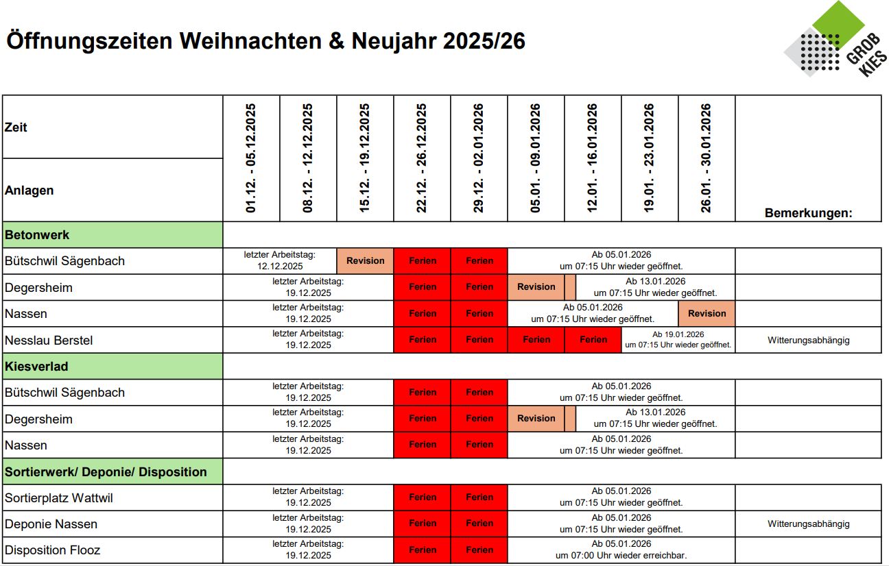 Wir freuen uns, Sie im neuen Jahr wieder wie gewohnt bedienen zu dürfen.