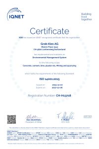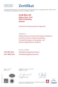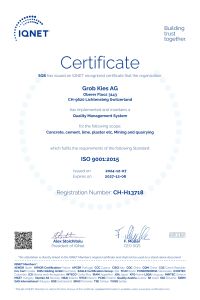 Die werkseigenen Produktionskontrolle für Gesteinskörnungen und Betonprodukte wird überwacht durch den Schweizerischen Überwachungsverband für Gesteinsbaustoffe SÜGB und ist seit 2004 von diesem zertifiziert.